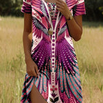 שדרגי את מלתחתך עם שמלת קיץ מדהימה זו, שנוצרה כדי להרשים עם גזרה רפויה, שרוולים קצרים, גימור אחיד ובד קל משקל עם שולי מתרחבים. זו השמלה המושלמת לך לרגעים מזדמנים או רב-תכליתיים.