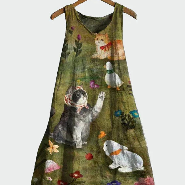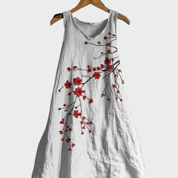 אלכסנדרה | שמלת קיץ רקומה בדוגמת תרנגולים