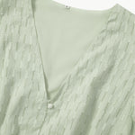 תחכום ללא מאמץ: עם הכפתורים בחזית, מחשוף ה-V והגזרה הזורמת, השמלה יוצרת מראה אלגנטי ומיידי. אין צורך בשכבות נוספות או באביזרים מורכבים – פשוט לבשי אותה ותצאי בביטחון ללא מאמץ.