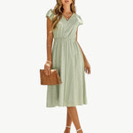 שרוולים עם קפלים עדינים: השמלה מעוצבת עם שרוולים עם קפלים רכים, המוסיפים למראה שלך נגיעה רומנטית ושמחה. השרוולים מעניקים למראה קליל ונשי, המדגיש את הגזרה מבלי להאפיל עליה.