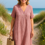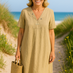 Letizia - שמלת כותנה ופשתן עם שרוולים קצרים