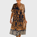 שמלת מידי עם צווארון וי והדפסה רחבה של טליה