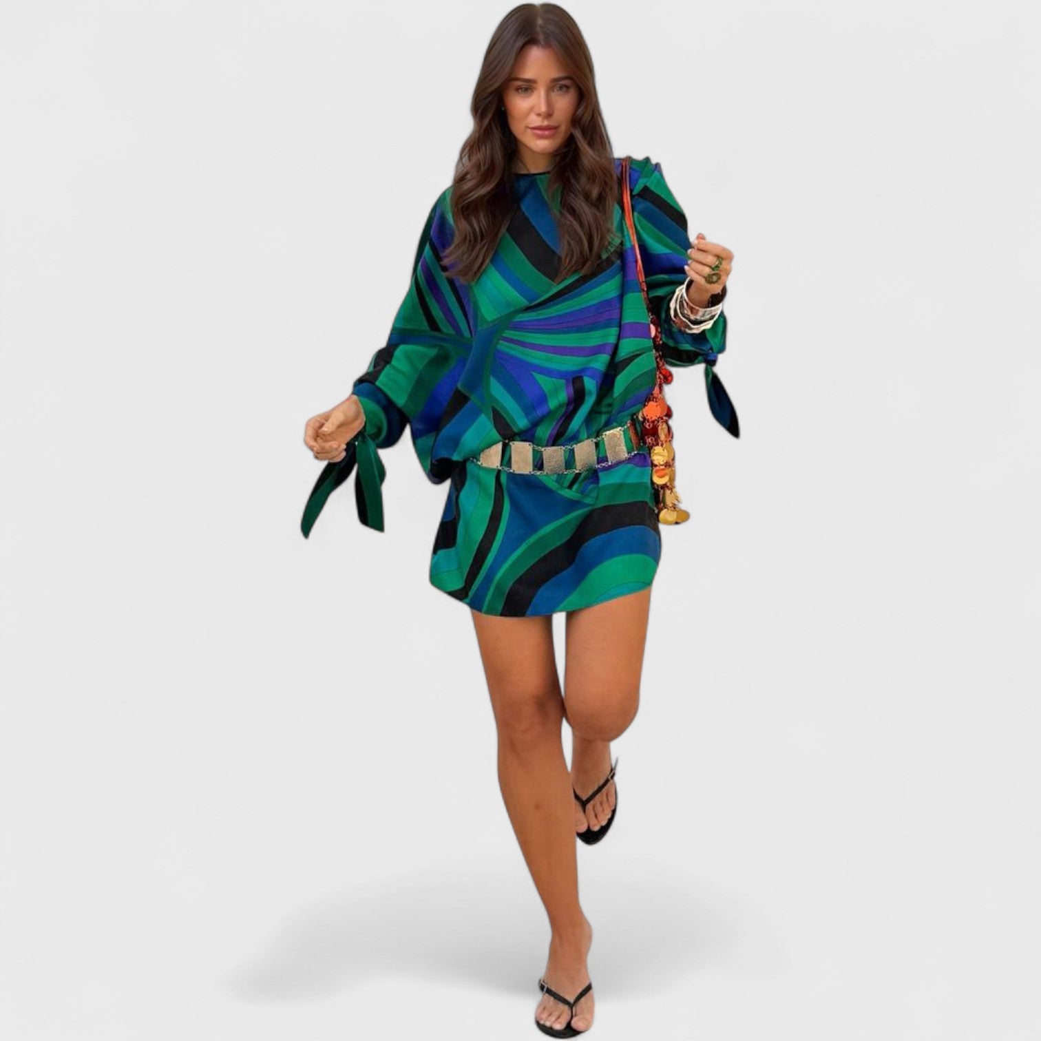 שמלת מקסי עם הדפס ספירלה של מאיה