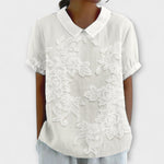 גלה את חולצת אמה - חולצה מודפסת וינטג', פריט לבוש נצחי שמאחד Elegance וק轻ות. עם רקמת פרחים עדינה וקרדיגן פיטר פן קלאסי, הארון היומיומי שלך יעלה לרמה חדשה.