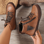 מגפי עור לנשים עם רוכסן צדדי וכף רגל עגולה