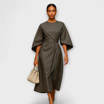 שמלת המקסי "ורד" היא השילוב המושלם בין מבנה מוגדר לזרימה טבעית, ומציעה אלגנטיות עם טוויסט נינוח. היא מעוצבת עם חגורה במותן ובד נשפך, מחמיאה לגזרה ומאפשרת חופש תנועה מלא. בין אם את בדרך לאירוע יום או למפגש ערב קליל, ורד מתאימה את עצמה בביטחון שקט ובסטייל על-זמני.
