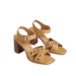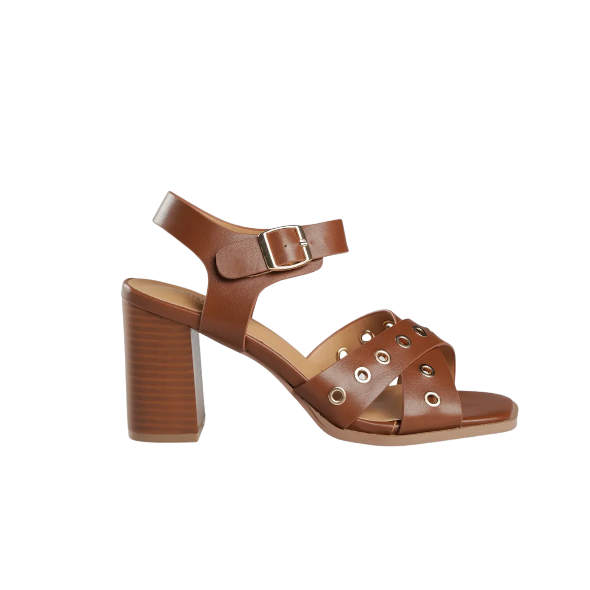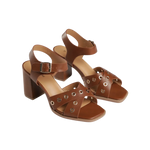סנדלי עקב בגזרת איקס עם ניטים חלולים למראה מלא נוכחות. עשויים דמוי עור איכותי, עם עקב רחב ליציבות ומראה מחמיא. עיצוב שמשלב סטייל ייחודי עם טאץ' מודרני.