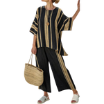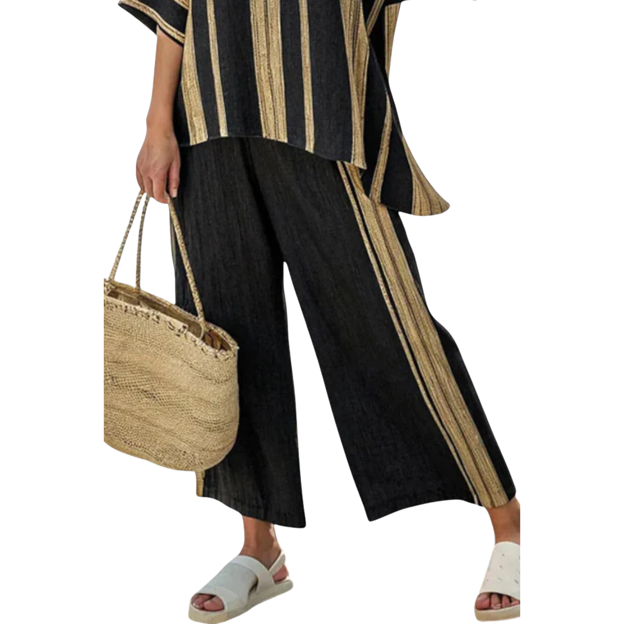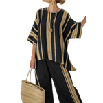 עדן | סט פשתן נינוח עם טופ פסים רחב