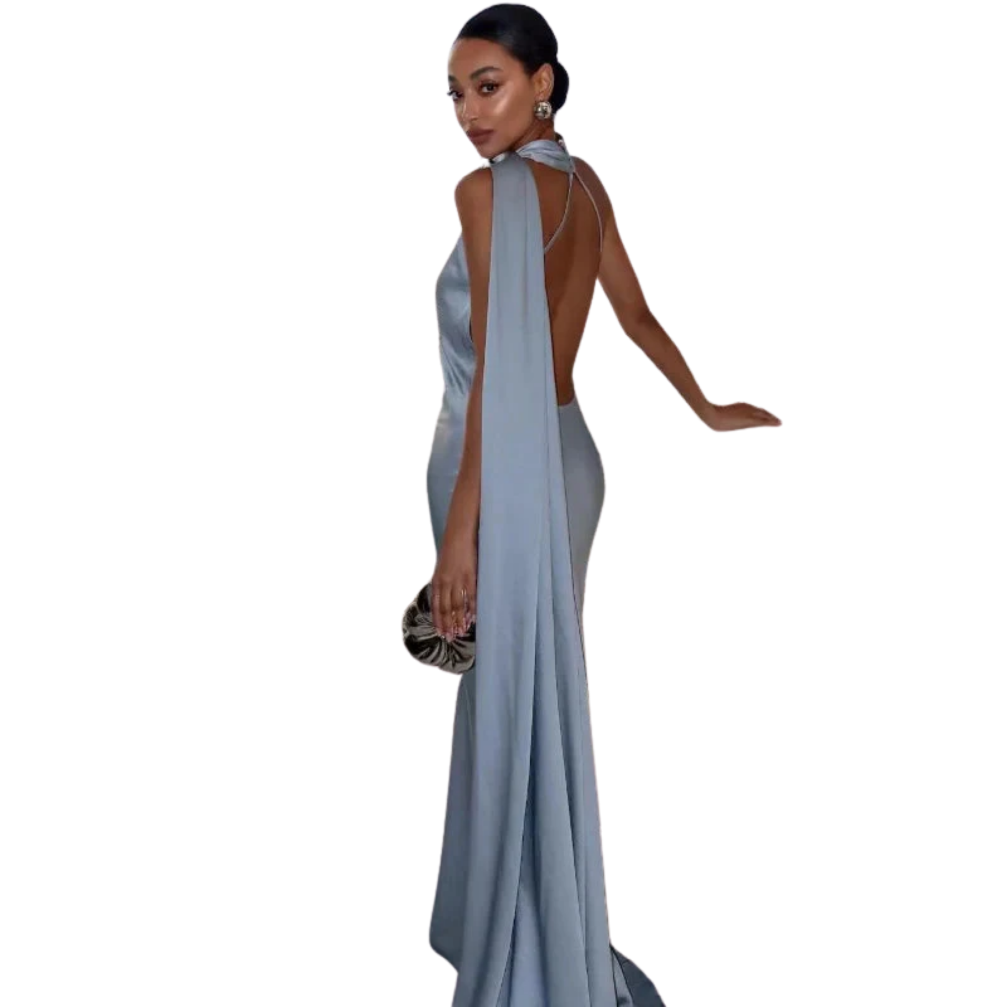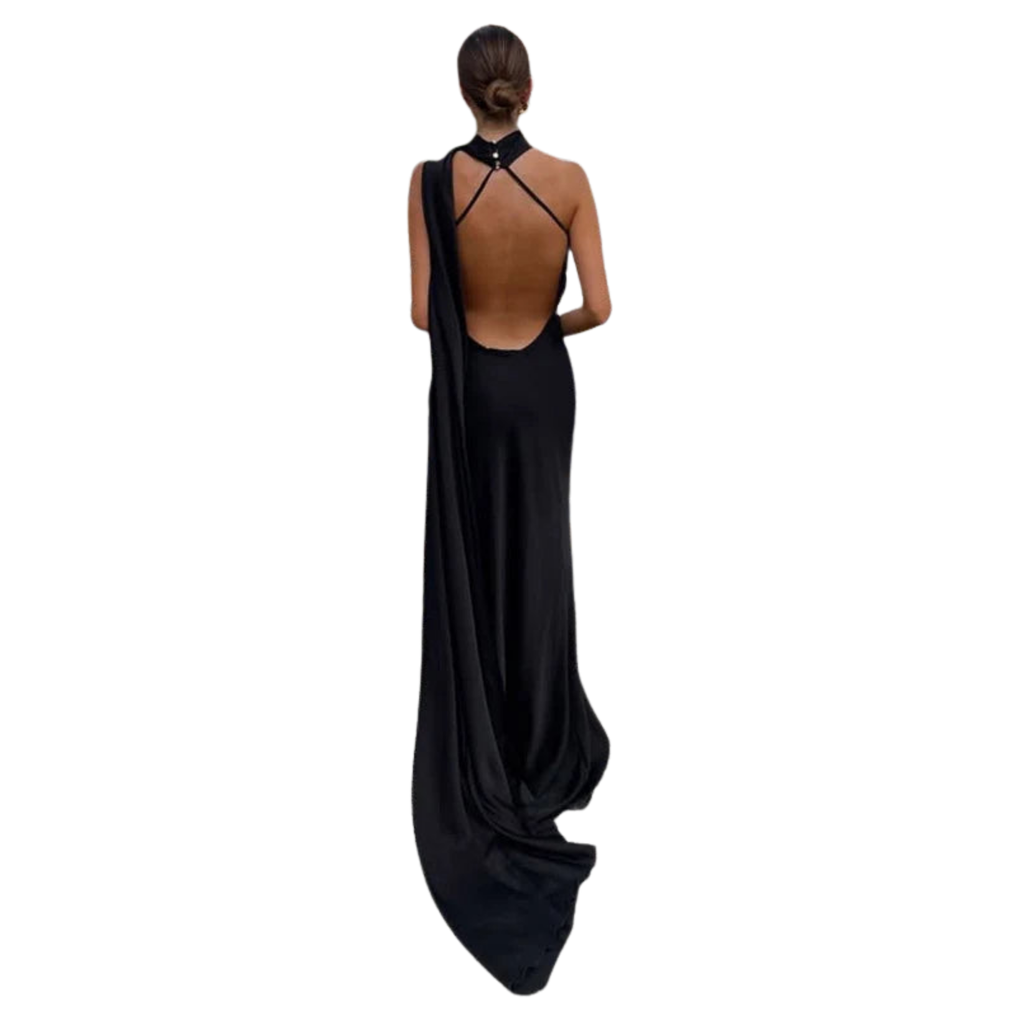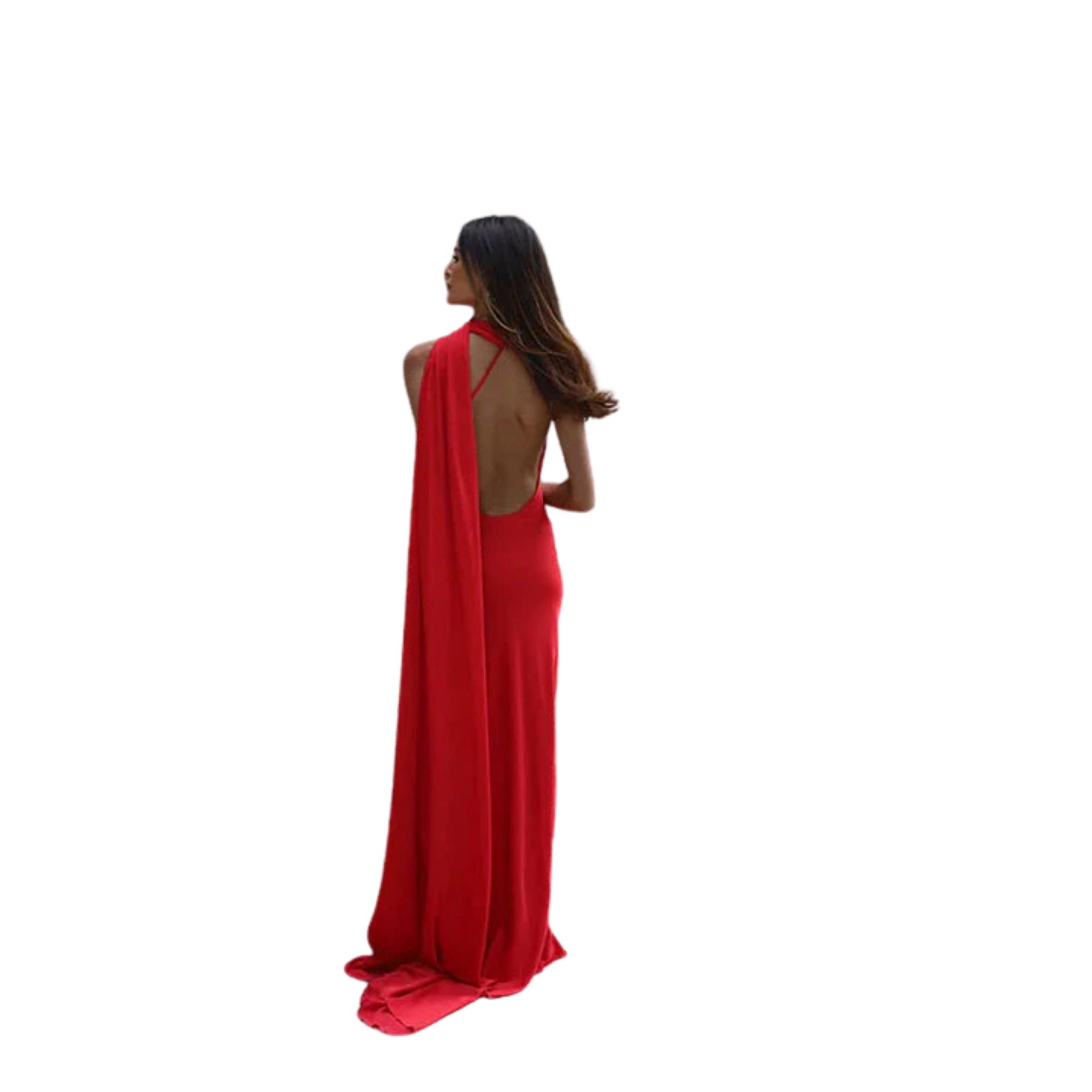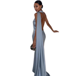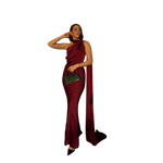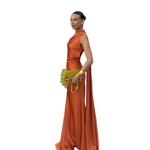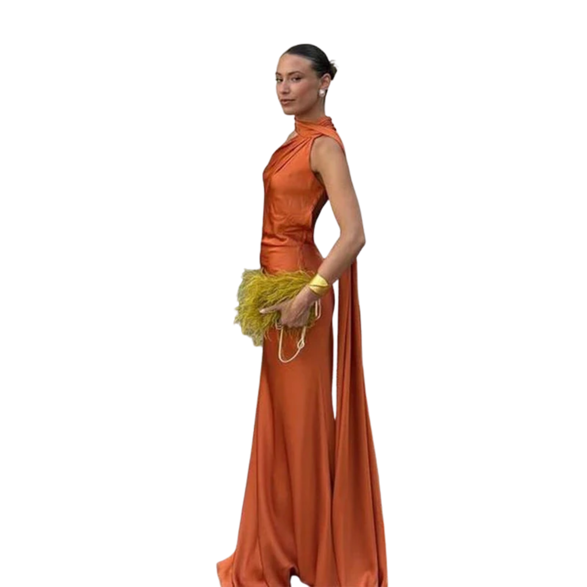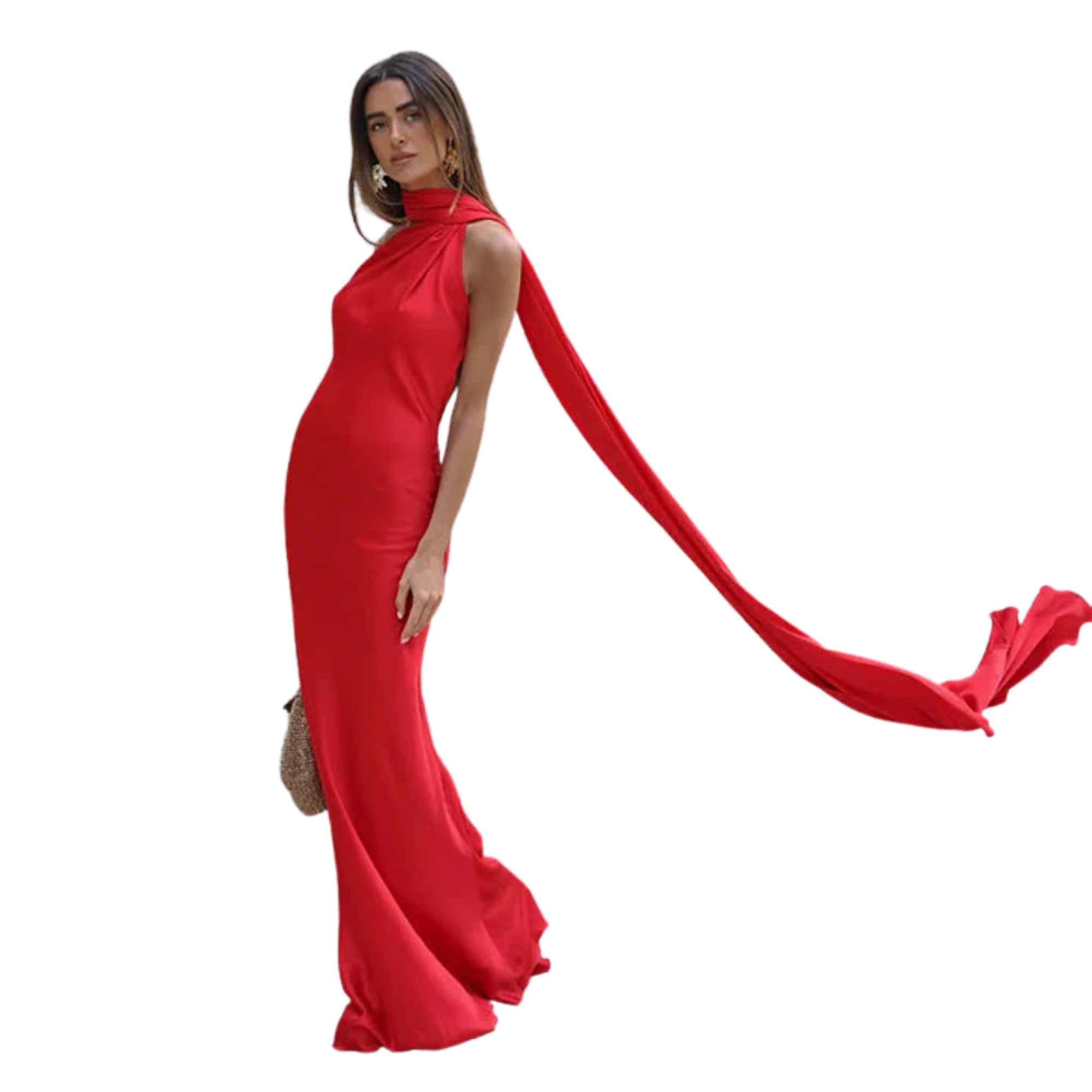 עיצוב דרמטי ומחמיא – גזרת כתף אחת עם פרט צעיף זורם שמאריך את הגזרה ומדגיש את עצם הבריח למראה אלגנטי וזוהר.