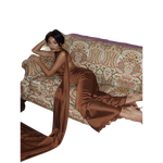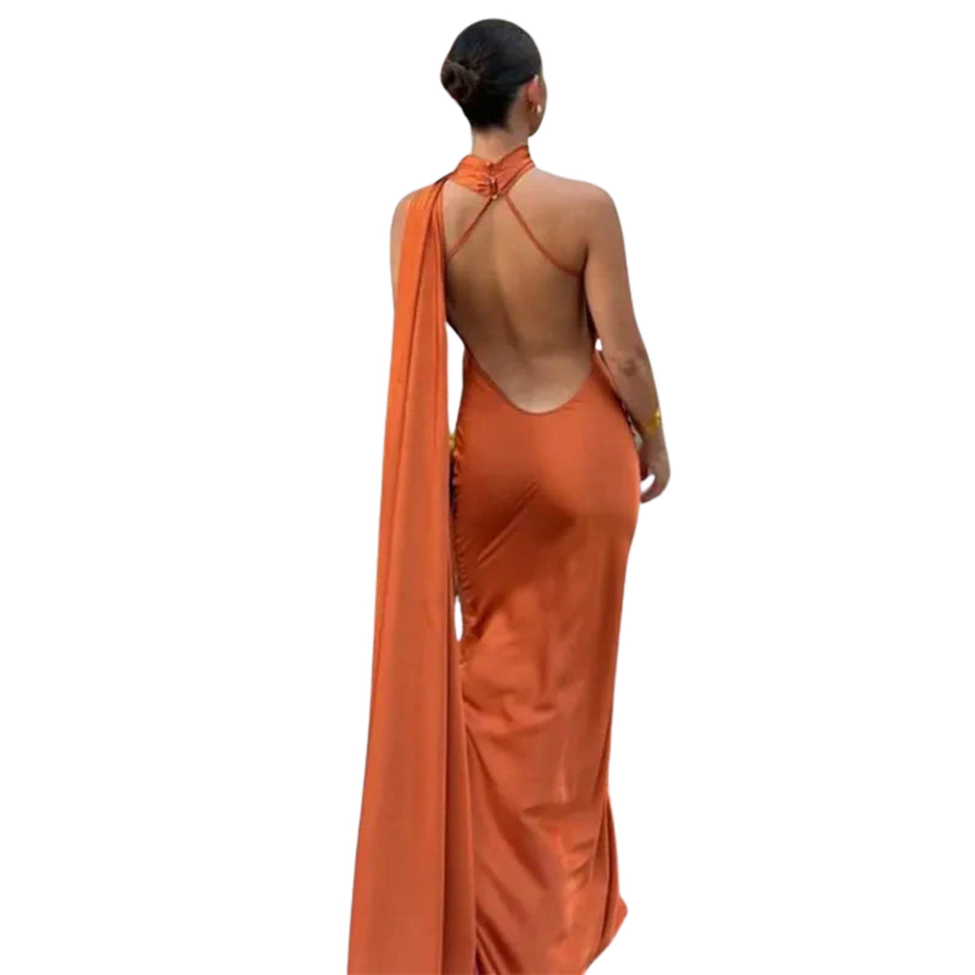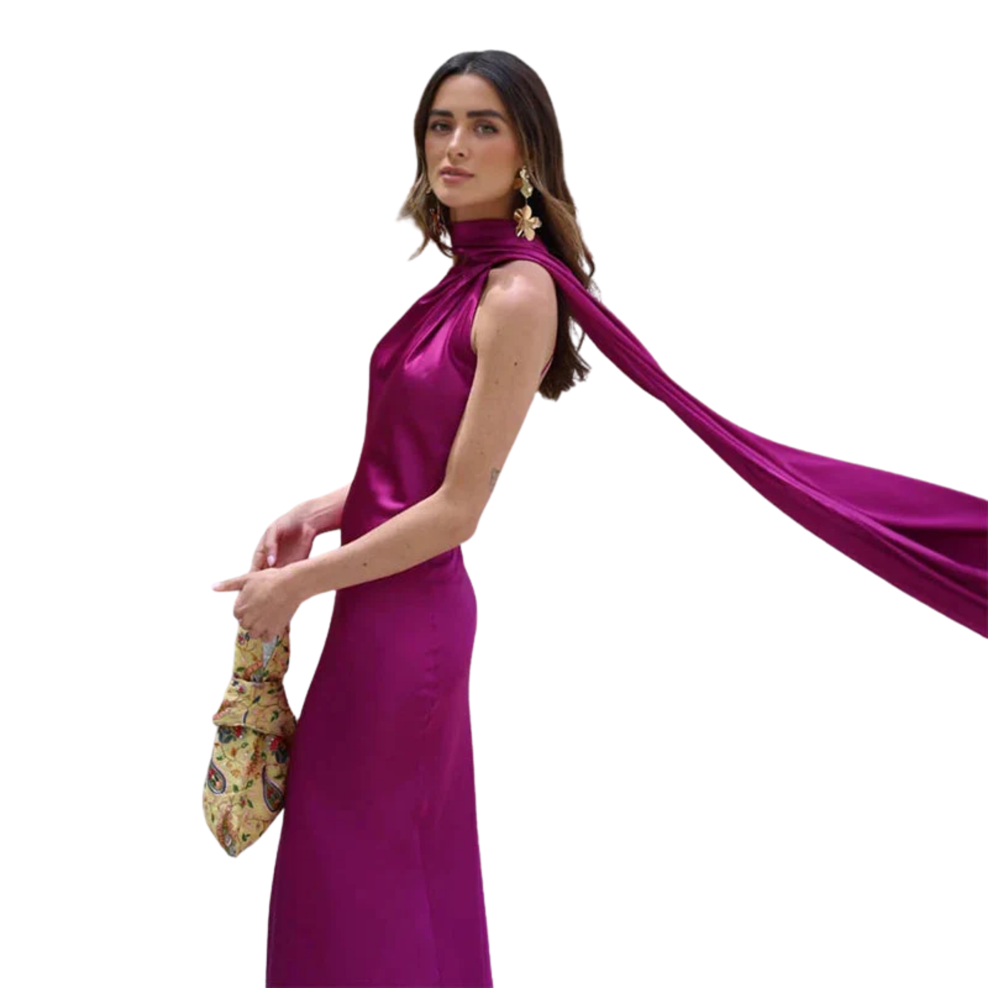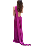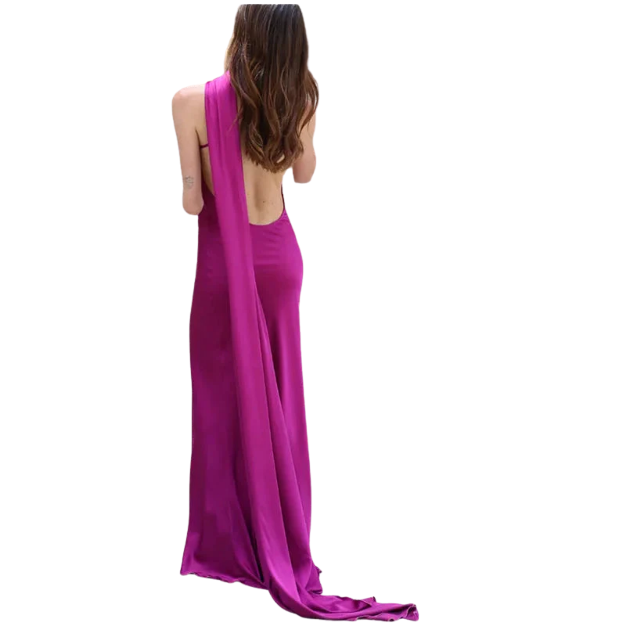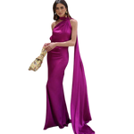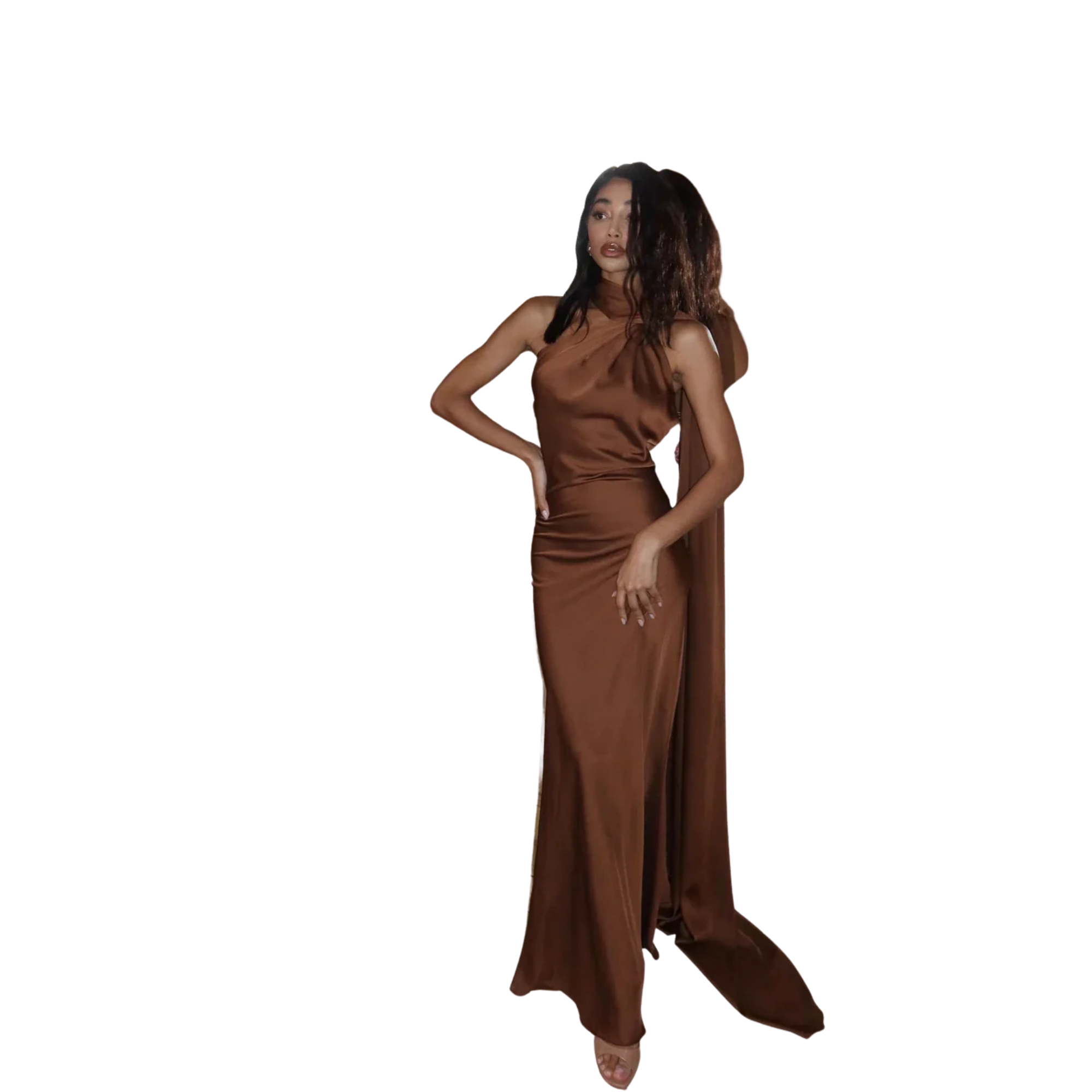 עיצוב דרמטי ומחמיא – גזרת כתף אחת עם פרט צעיף זורם שמאריך את הגזרה ומדגיש את עצם הבריח למראה אלגנטי וזוהר.