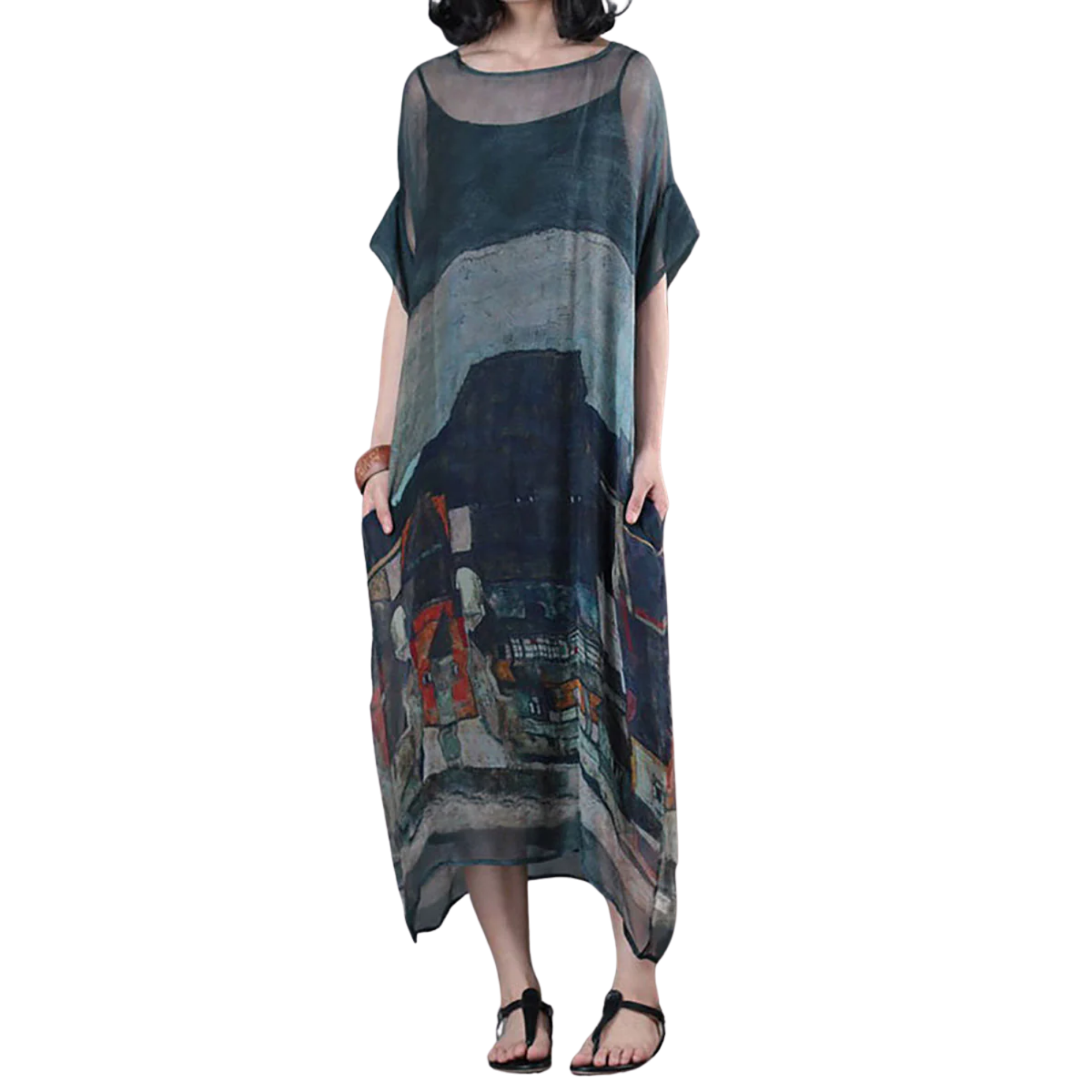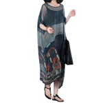 שמלת מקסי שקופה בהדפס קו רקיע עירוני