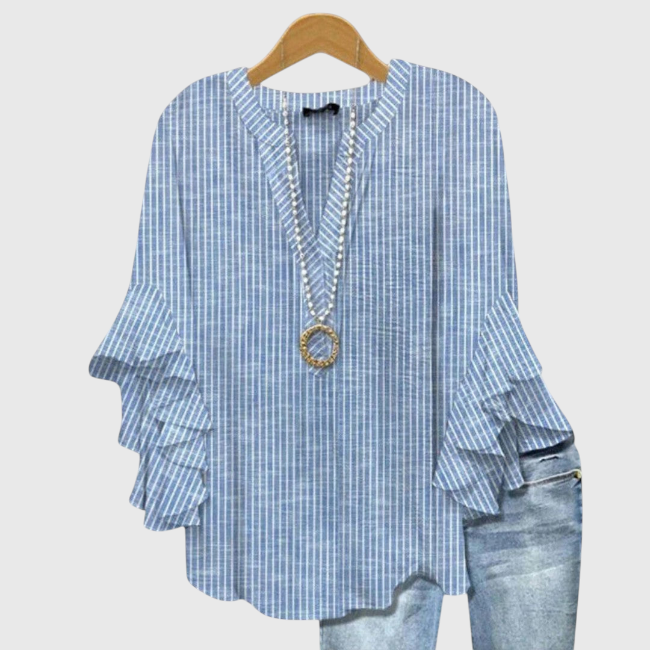 • נגיעות נשיות – שרוולים מדורגים שמוסיפים חן ותנועה.