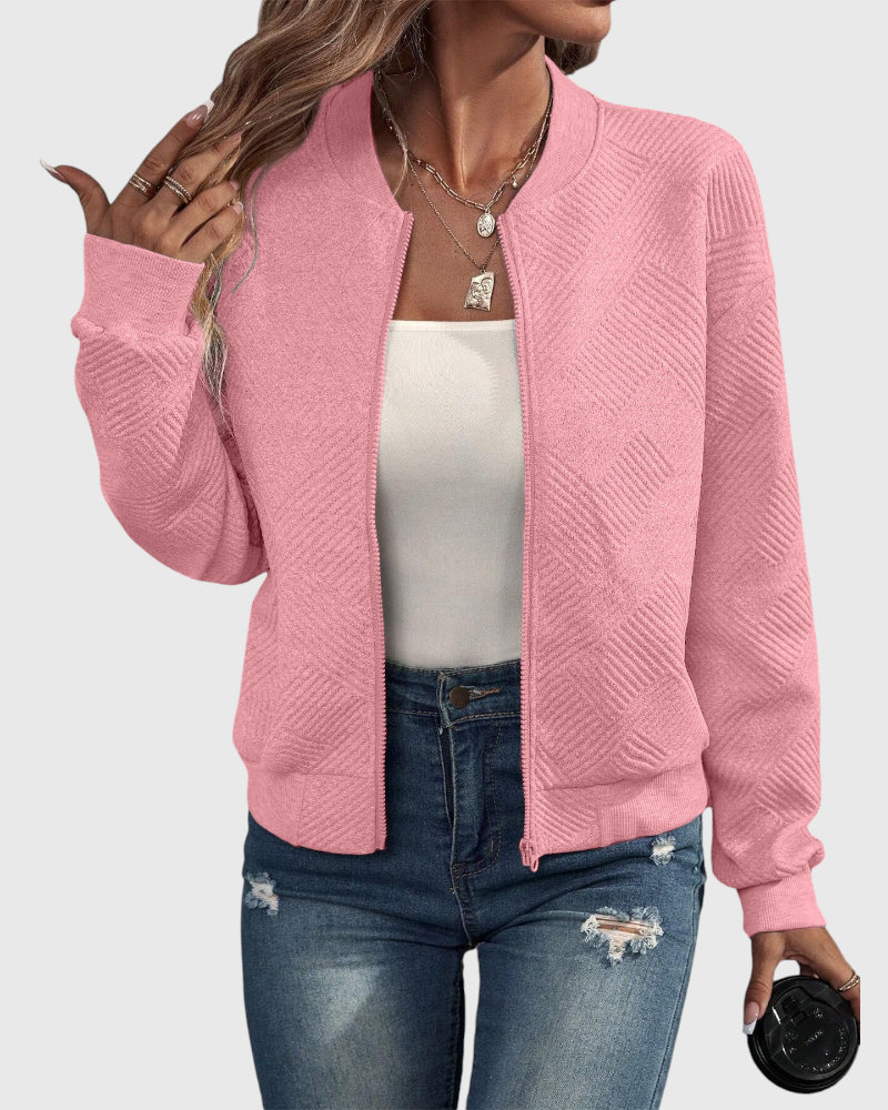 הוסיפי טאצ' עדכני למלתחה שלך עם ז'קט רוכסן בעל טקסטורה ייחודית. שכבה קלילה ורב־שימושית המתאימה מבוקר ועד ערב.