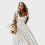 מחפשת שמלה שלא רק מדגישה את הסילואטה הנשית שלך, אלא גם מחבקת אותך בנעימות בימים חמים של קיץ? השמלה המקסי שלנו עם רצועות רפויות היא הפתרון המושלם להופעות אופנתיות, בין אם ביום-יום ובין אם באירועים מיוחדים.