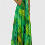 אורך השמלה מגיע עד לקרסול, מה שהופך אותה לאידיאלית לאירועי קיץ חגיגיים ולרגעים מיוחדים תחת השמש.