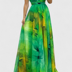 שמלות מקסי בגזה קלילה עם הדפס פרחים עדין, שמלת קפריס מציעה סילואטה זורמת שתשאיר אותך מרגישה מיוחדת בכל אירוע.