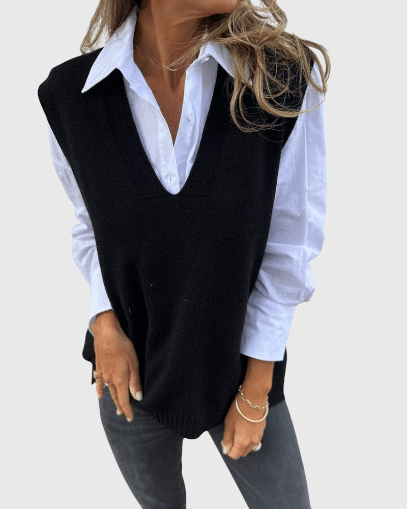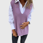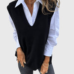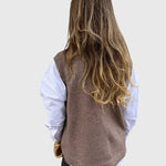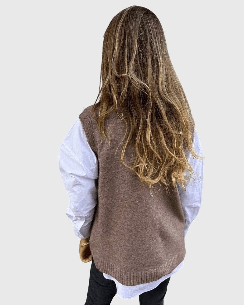 אפודת קלרה מוסיפה טאץ’ קלאסי ואלגנטי לכל מראה. עם גזרה רפויה ומפתח V מחמיא, היא משתלבת בקלות מעל חולצות ומעניקה מראה נקי, נשי ואלגנטי.