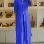 ✅גזרה נינוחה ונוחה: הגזרה הזורמת נופלת בעדינות על הגוף ונעה בחופשיות עם כל צעד. היא מאפשרת תנועה קלה תוך שמירה על מראה נקי ומסוגנן. הסגנון הדו-חלקים יוצר איזון בין נוחות לביטחון. סט שמרגיש קל ומקנה תחושה של אלגנטיות ללא מאמץ.