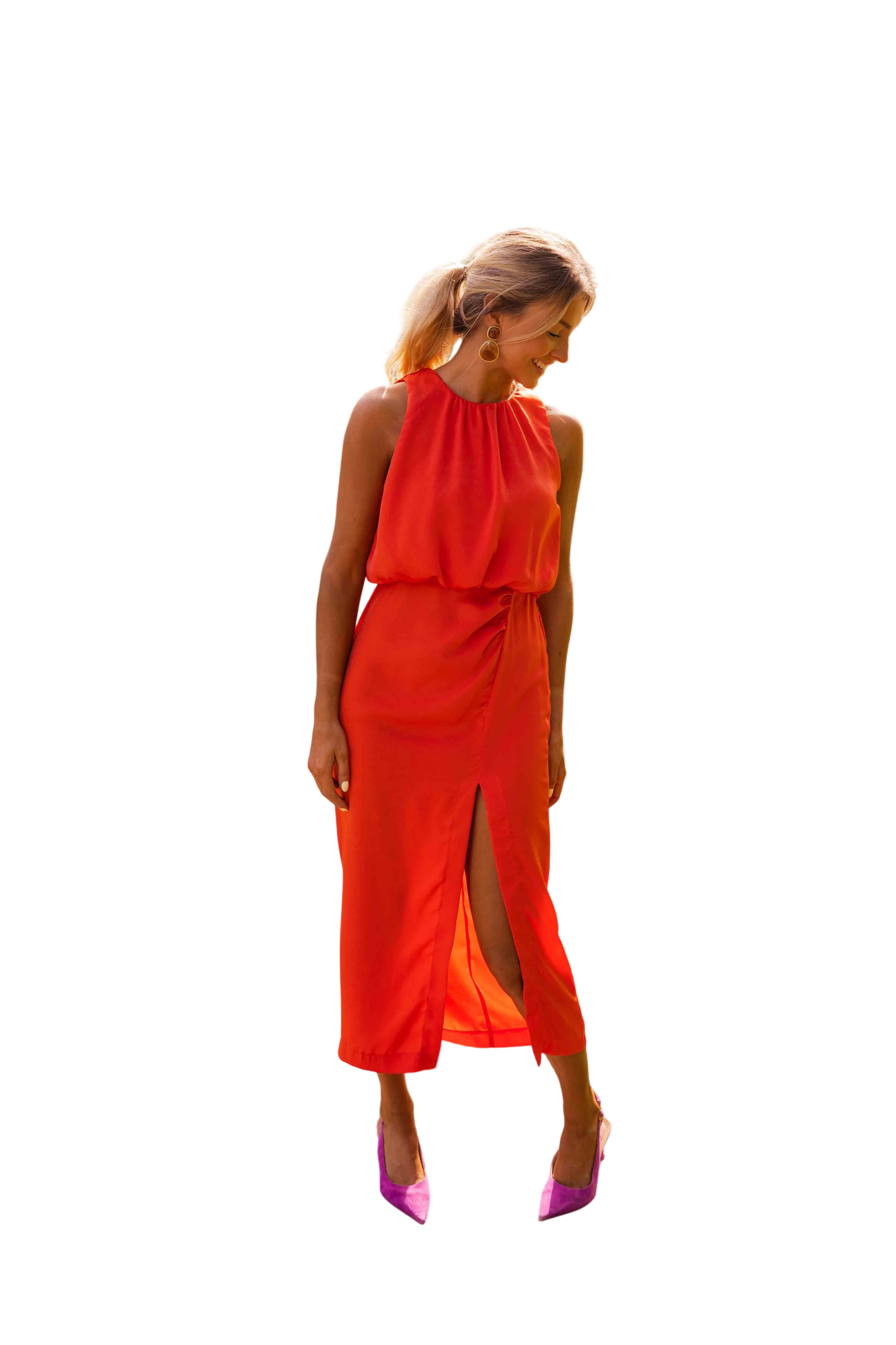 מציגים את שמלת המידי ללא שרוולים אדלינה—עדות לאלגנטיות חסרת מאמץ וחן נשי.