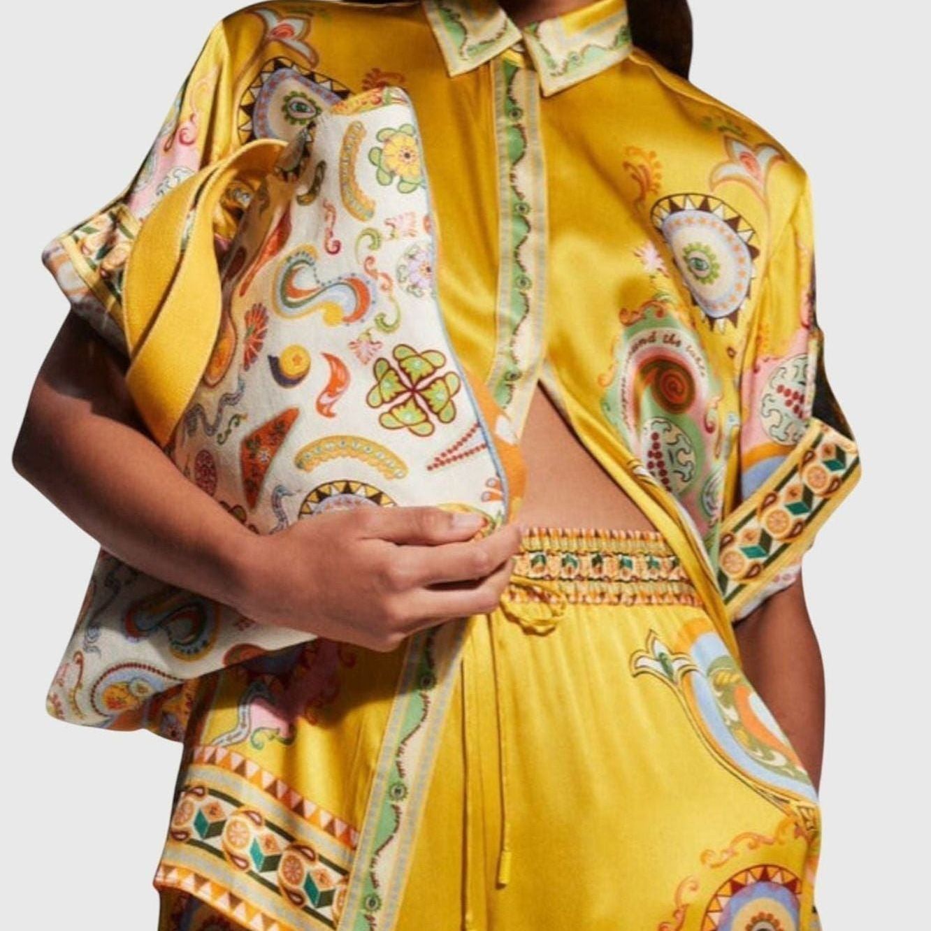 חולצת סאטן בגזרה גדולה עם קשיו